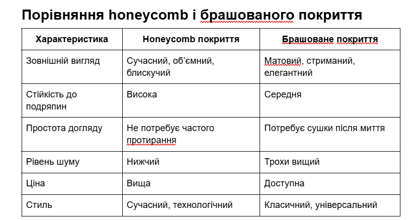 І honeycomb, і брашоване покриття мають свої переваги та підходять під різні потреби.