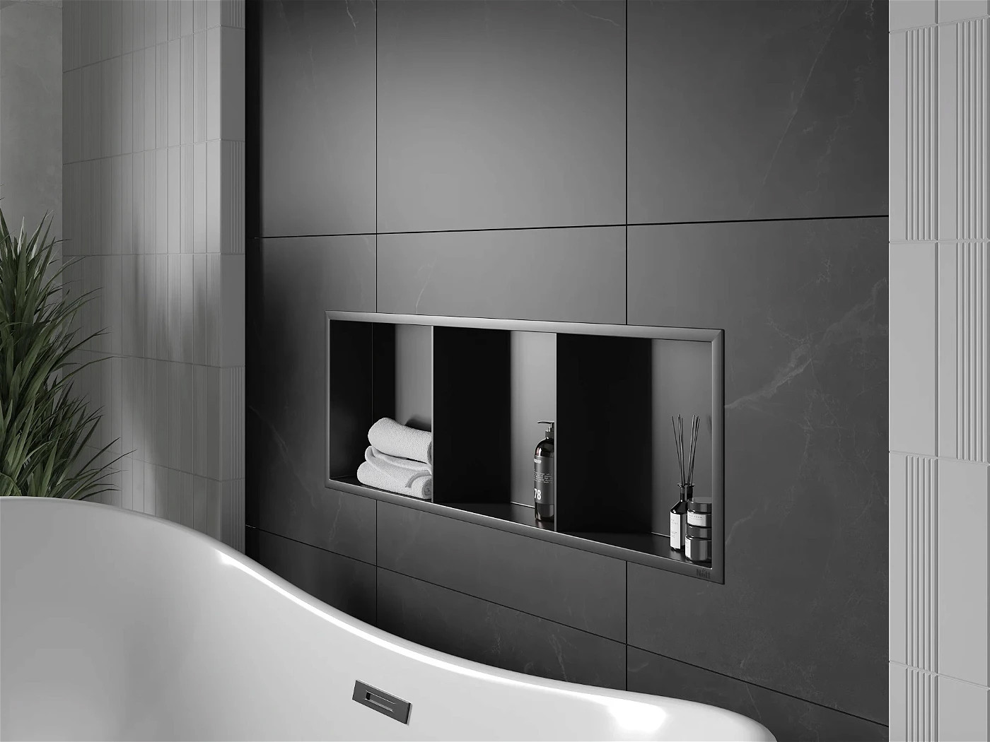 - Економія простору: Вбудовані ніші не займають додаткового місця, що є ідеальним для маленьких ванних кімнат.