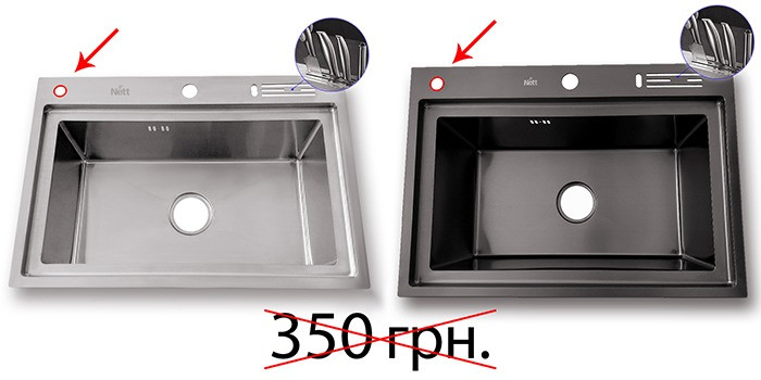 - Зменшення ширини внутрішніх бортиків у моделі мийки NS-7048\NB-7048.Дане зміни було зроблено, щоб максимально збільшити корисну площу чаші та покращити зовнішній вигляд кухонної станції.(см. 7)