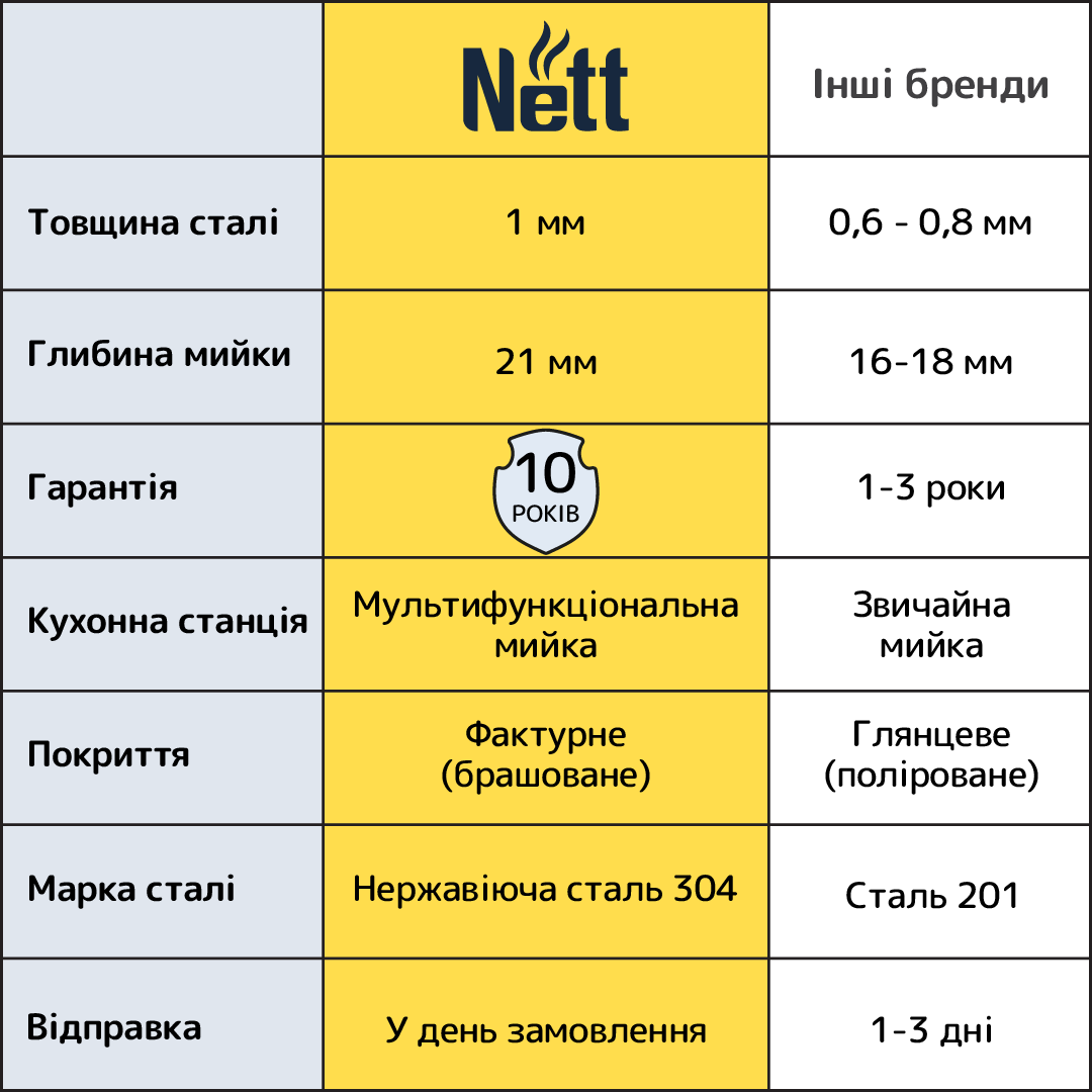 Матеріал мийки відрізняється чудовою якістю, маючи товщину 1 мм у найтонших місцях і 3 мм – в основній частині.