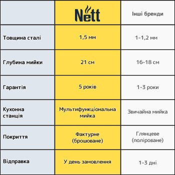 Мийка для кухні виконана з нержавіючої сталі вищої якості і максимальною товщиною 3 мм в основі і 1 мм в найтоншому місці.