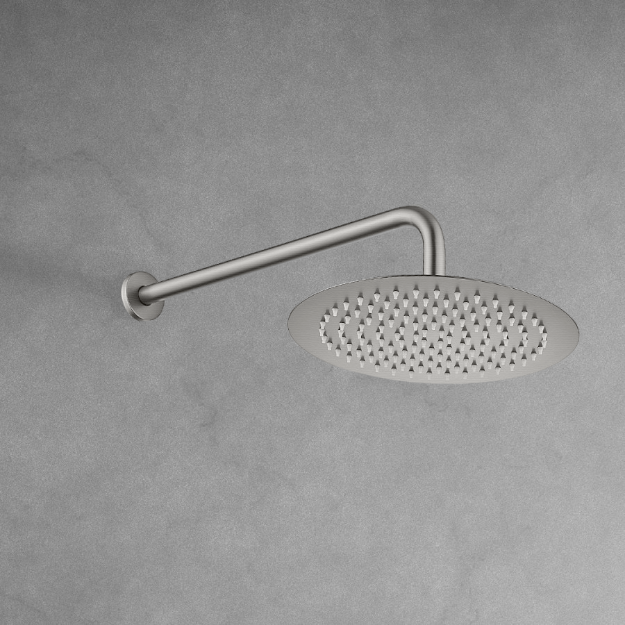 Душова система Nett у відтінку нікель виглядає дорого та акуратно, ідеально поєднується з сірою плиткою, світлими інтер’єрами та сучасною сантехнікою. Це універсальний колір, який додає простору «чистого» преміального вигляду та не виходить з трендів.