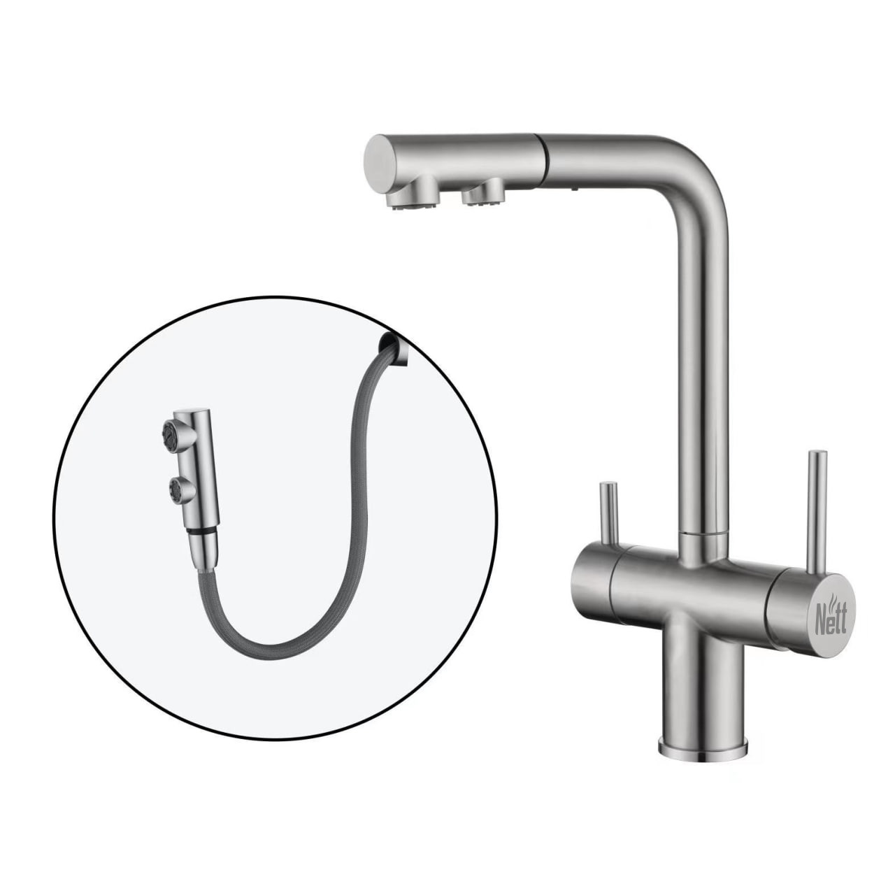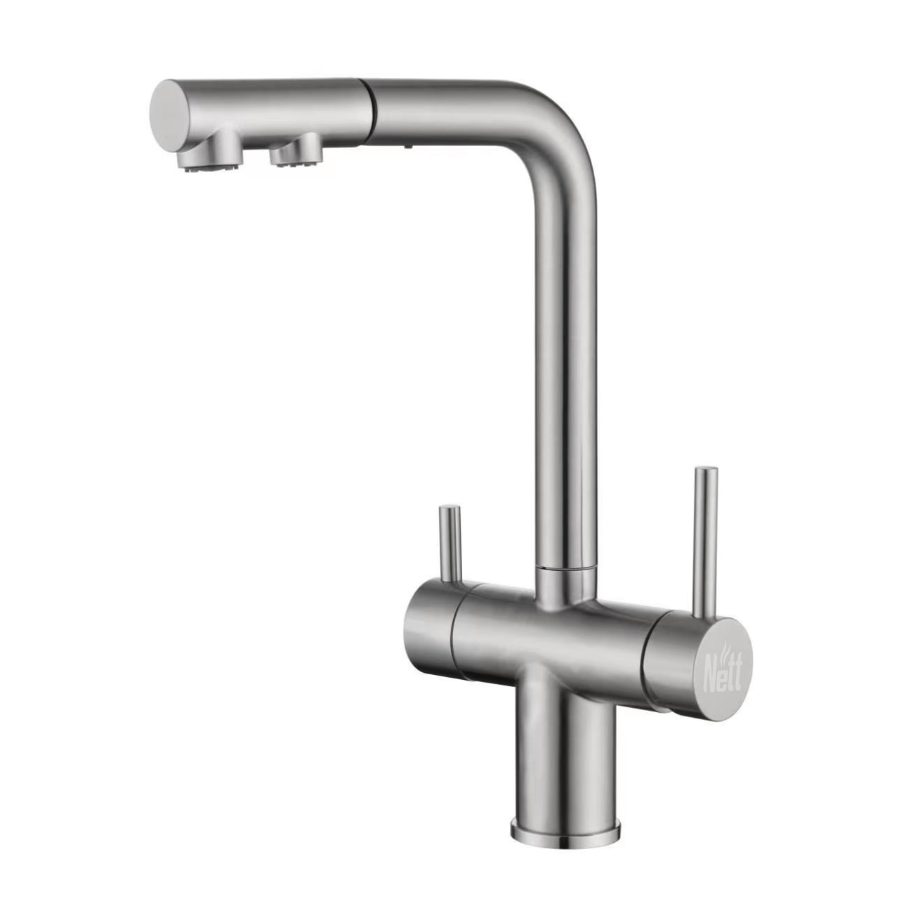 Цей кран розроблено для забезпечення доступу до як простої, так і очищеної води. Два регулювальні важелі спрощують переключення між фільтрованою та водопровідною водою, що робить його особливо зручним для миття.