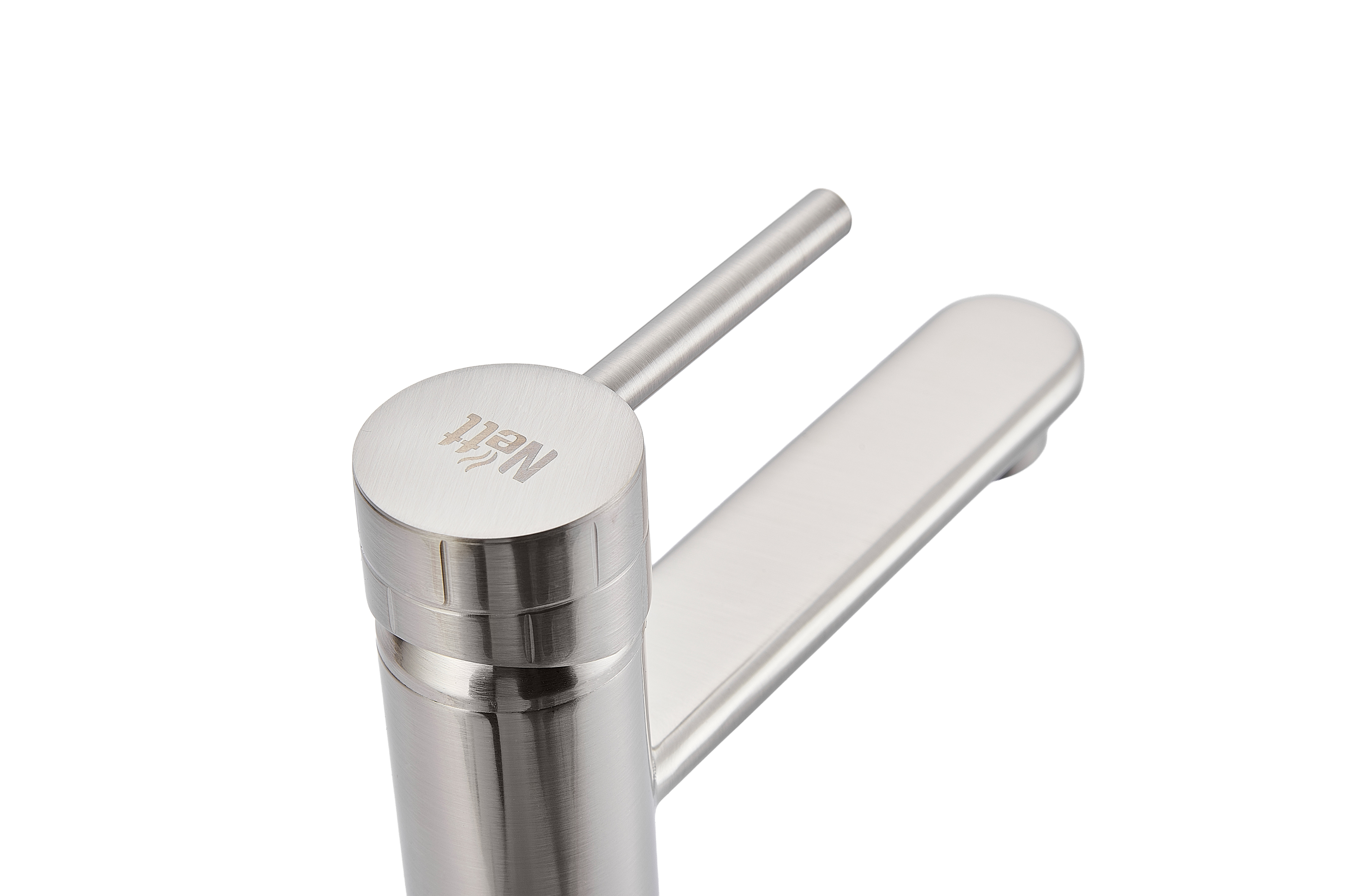 Змішувач Nett VS-99 у кольорі нікель — це стильне та універсальне рішення для умивальника, яке однаково добре підходить як для сучасних інтер’єрів, так і для більш стриманих дизайнерських рішень. Нікелевий відтінок виглядає м’якше за класичний хром, водночас залишається акуратним, благородним та легко поєднується з різною сантехнікою й оздобленням ванної кімнати.
