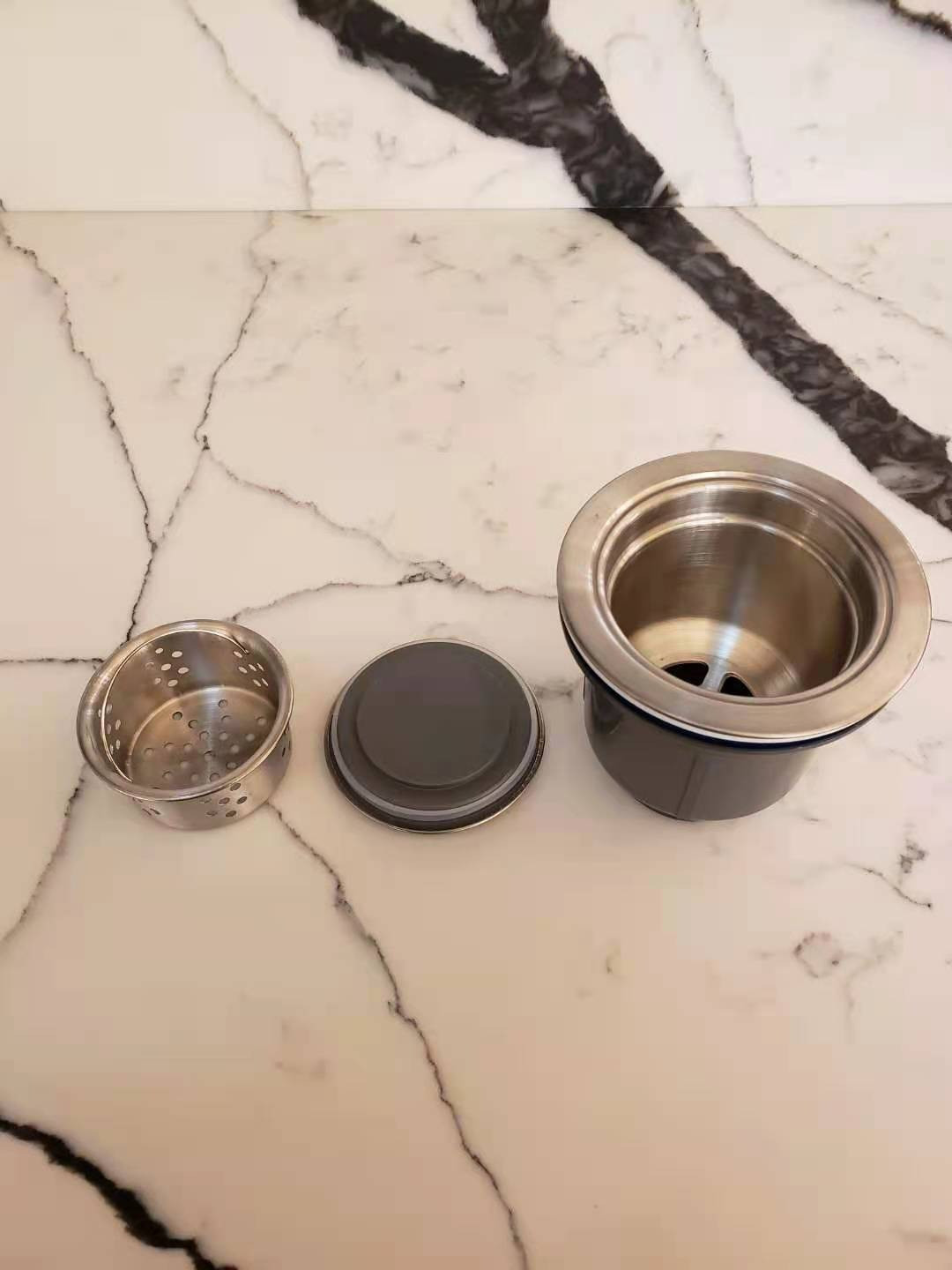 Для зручності вилучення сміття з сітки зливу, сифон оснащений спеціальною кошиком для сміття.Кошик повністю збирає всі відходи при митті посуду і легко виймається для чищення.