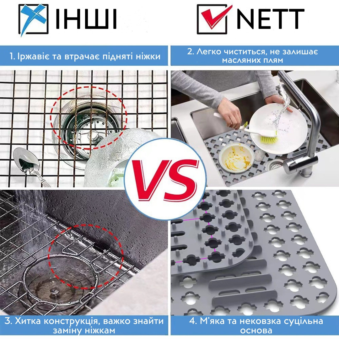 Килимок допомагає поглинати удари та шум при зіткненні посуду з поверхнею мийки, роблячи процес миття більш комфортним.