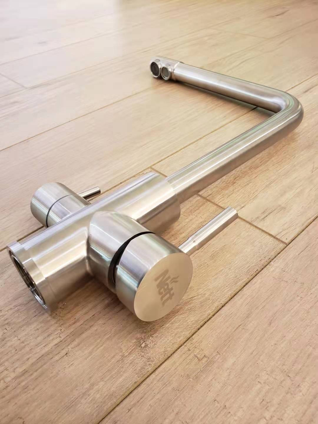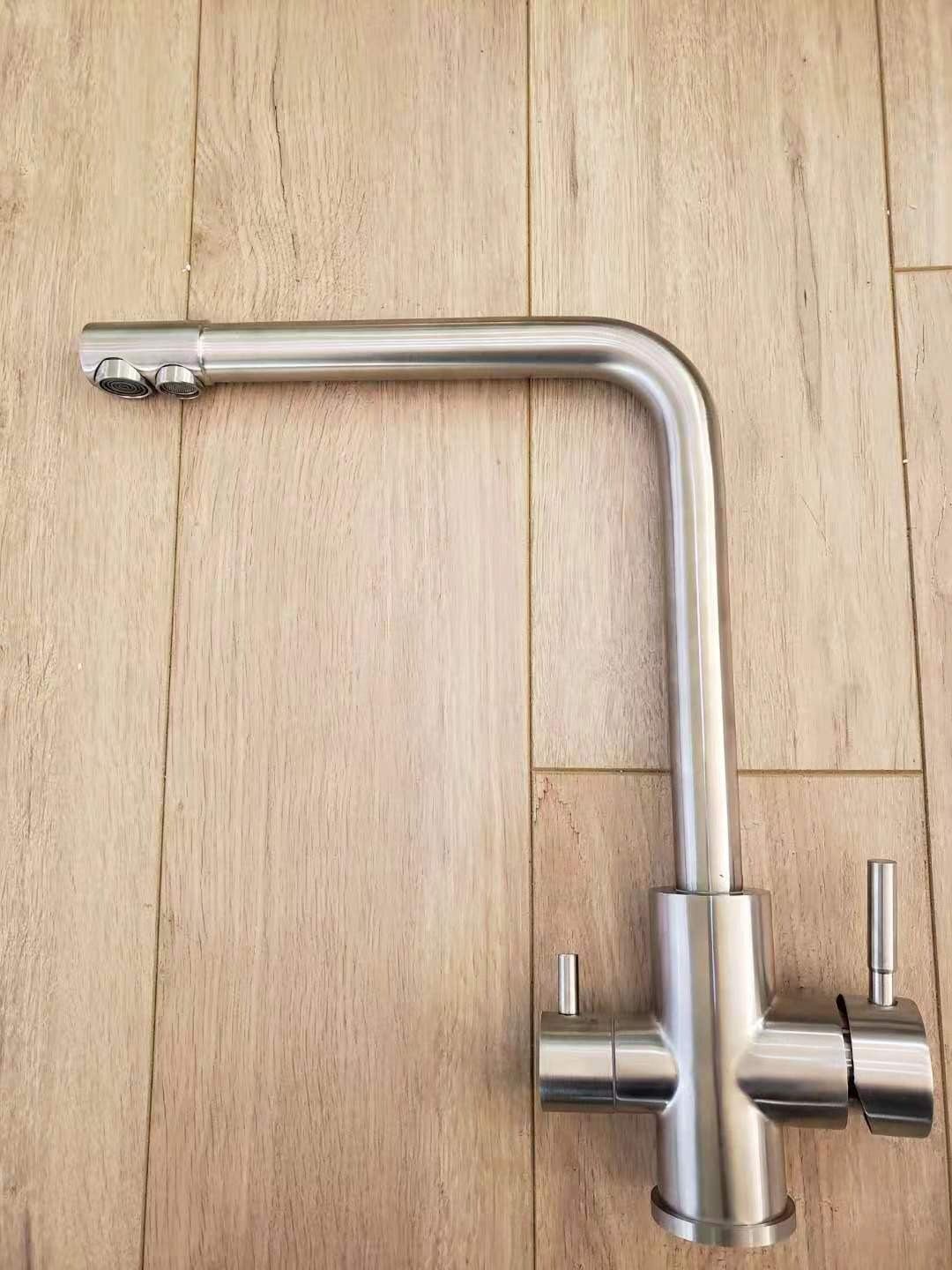 Змішувач обладнаний фільтром і може бути підключений як до водопровідної, так і до фільтрованої води. Управління потоком води здійснюється двома зручними важелями.