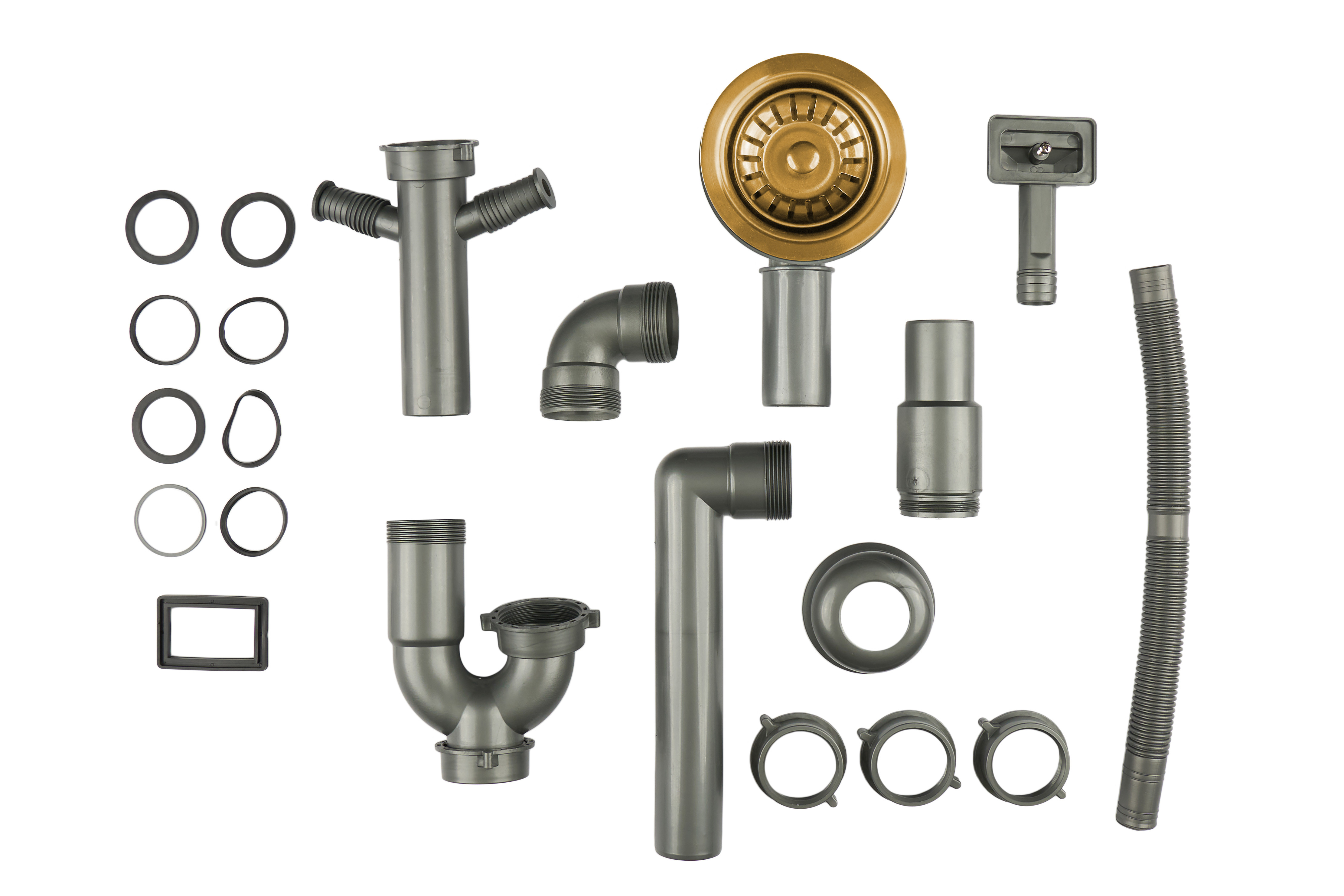 Всі металеві комплектуючі виконані з нержавіючої сталі 304 марки. Такий сифон для кухонної мийки більш стійкий до подряпин і появи корозії. Поєднання в складі 18% хрому і 10% нікелю дозволяє вірно служити десятиліттями!