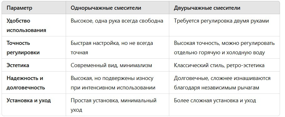 2. Трудоемкость при установке и уходе — двурычажные модели имеют больше деталей и механизмов, что может потребовать дополнительного ухода и более сложной установки.