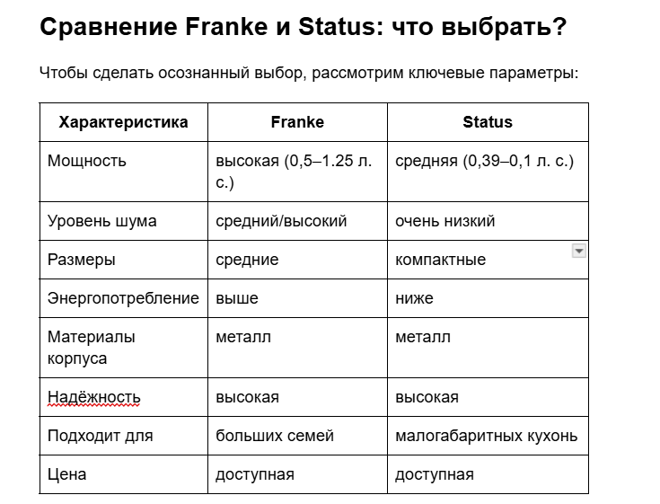 Если хотите сбалансировать цену и качество, можно выбрать среднюю модель Status с улучшенной шумоизоляцией, либо младшую версию Franke — они обеспечат оптимальное соотношение мощности и цены.