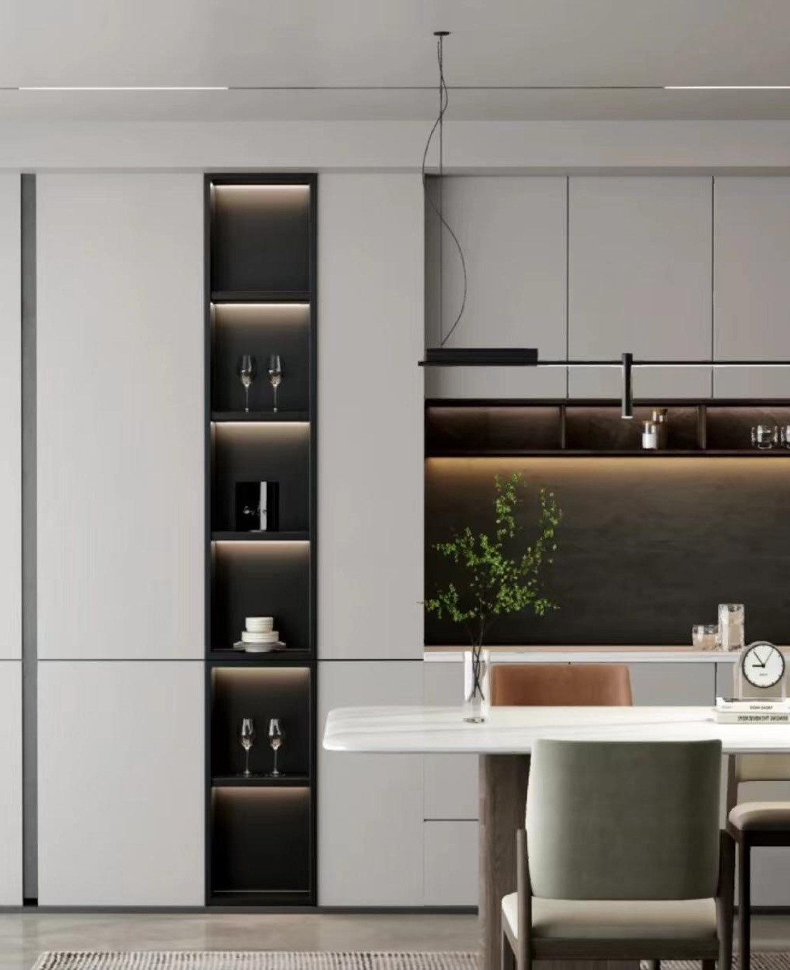 Ниша это углубление в стене, которое может быть использовано как для декоративных, так и для практических целей. Создание ниши — это отличный способ добавить интересные элементы в дизайн интерьера, не занимая при этом дополнительного пространства в комнате. С точки зрения функциональности, ниши могут служить для размещения предметов декора, книг, коллекций, аудио- и видеоаппаратуры, а также осветительных элементов, что делает их важным архитектурным элементом в современном дизайне интерьера. Кроме того, ниши могут использоваться как место для хранения предметов, особенно в небольших помещениях, где каждый квадратный сантиметр имеет значение.