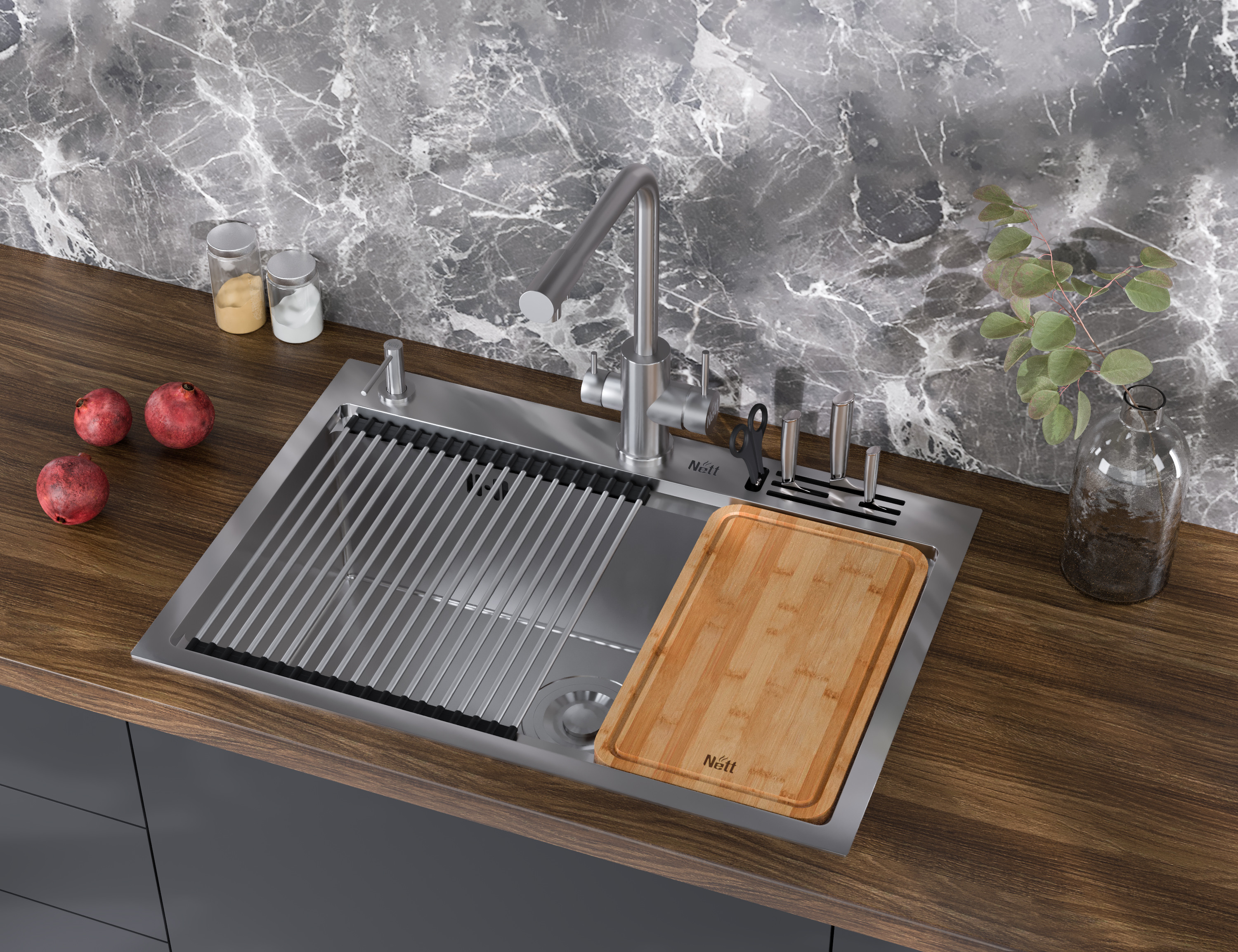 3. Универсальность. Накладные мойки подходят практически к любому типу кухонной столешницы, будь то дерево, камень или искусственный материал. Это делает их отличным выбором для любого дизайна кухни.