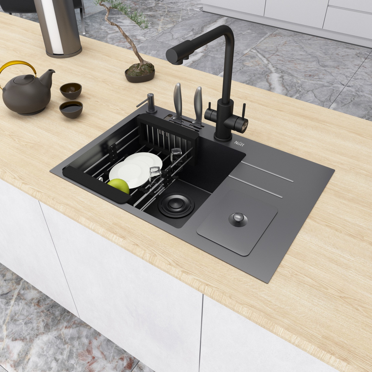 4. Вариативность материалов и дизайнов. Врезные мойки представлены в широком ассортименте материалов — от нержавеющей стали до керамики и композитных материалов, что позволяет подобрать оптимальный вариант для любого интерьера.