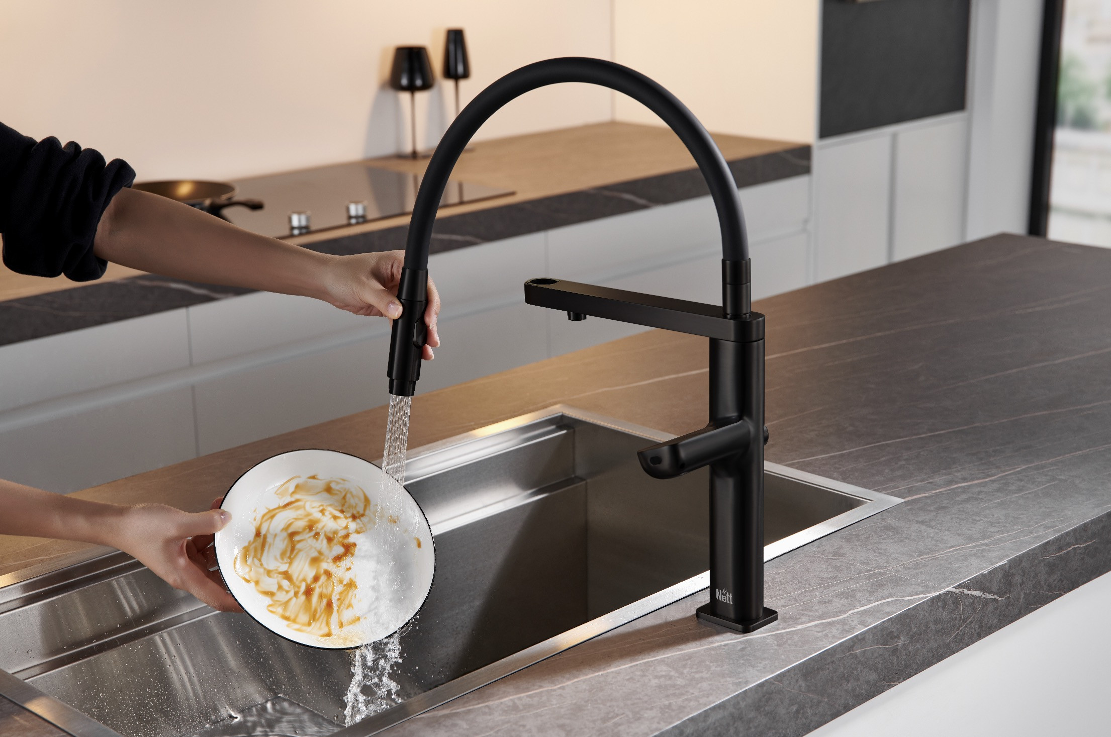 Гибкий излив позволяет вам максимально просто и эффективно вымывать самые отдаленные уголки вашей мойки