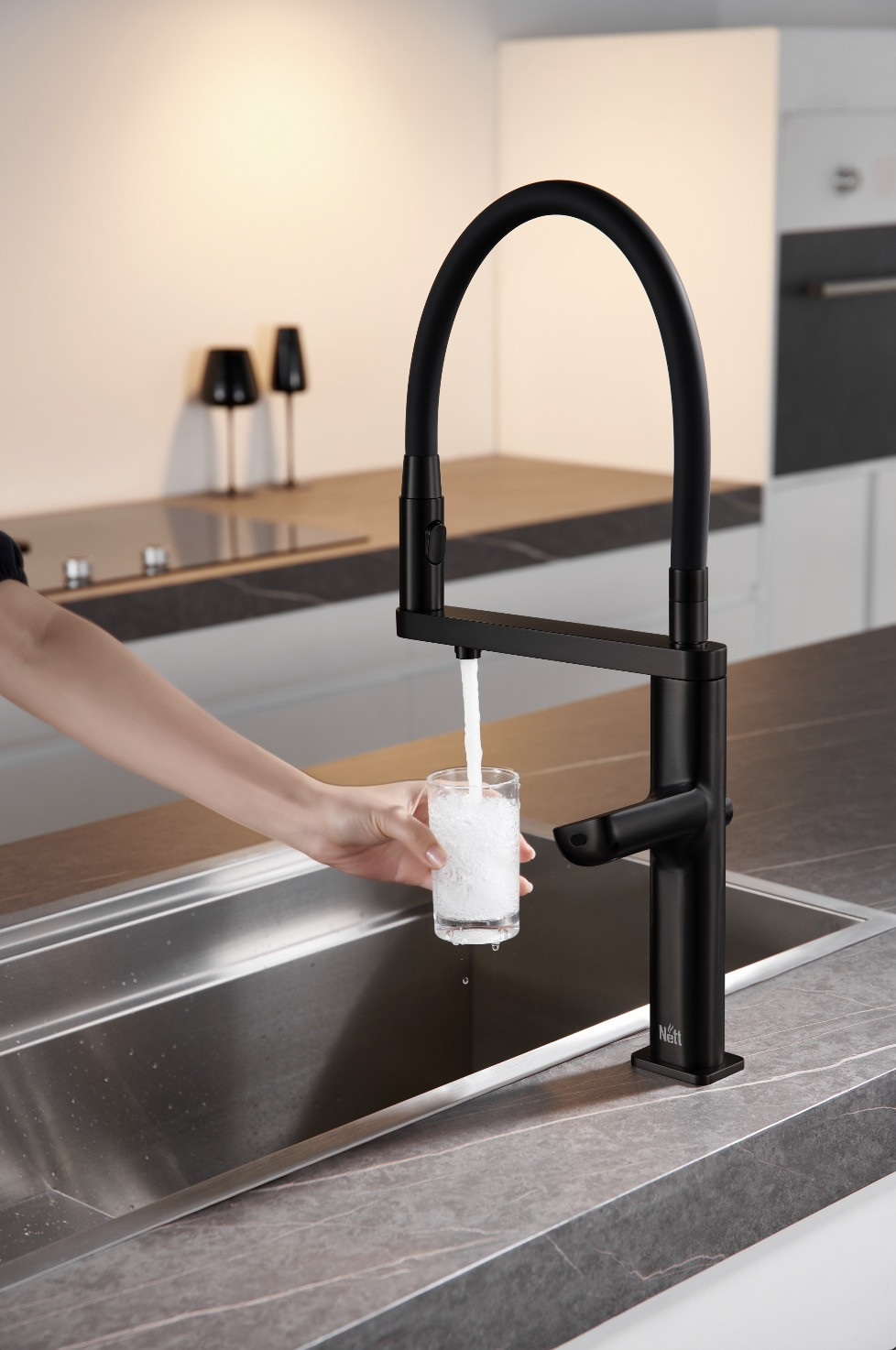 Черный цвет крана выполнен благодаря покрытию из водного электролиза, что обеспечивает надежность цвета на долгие годы
