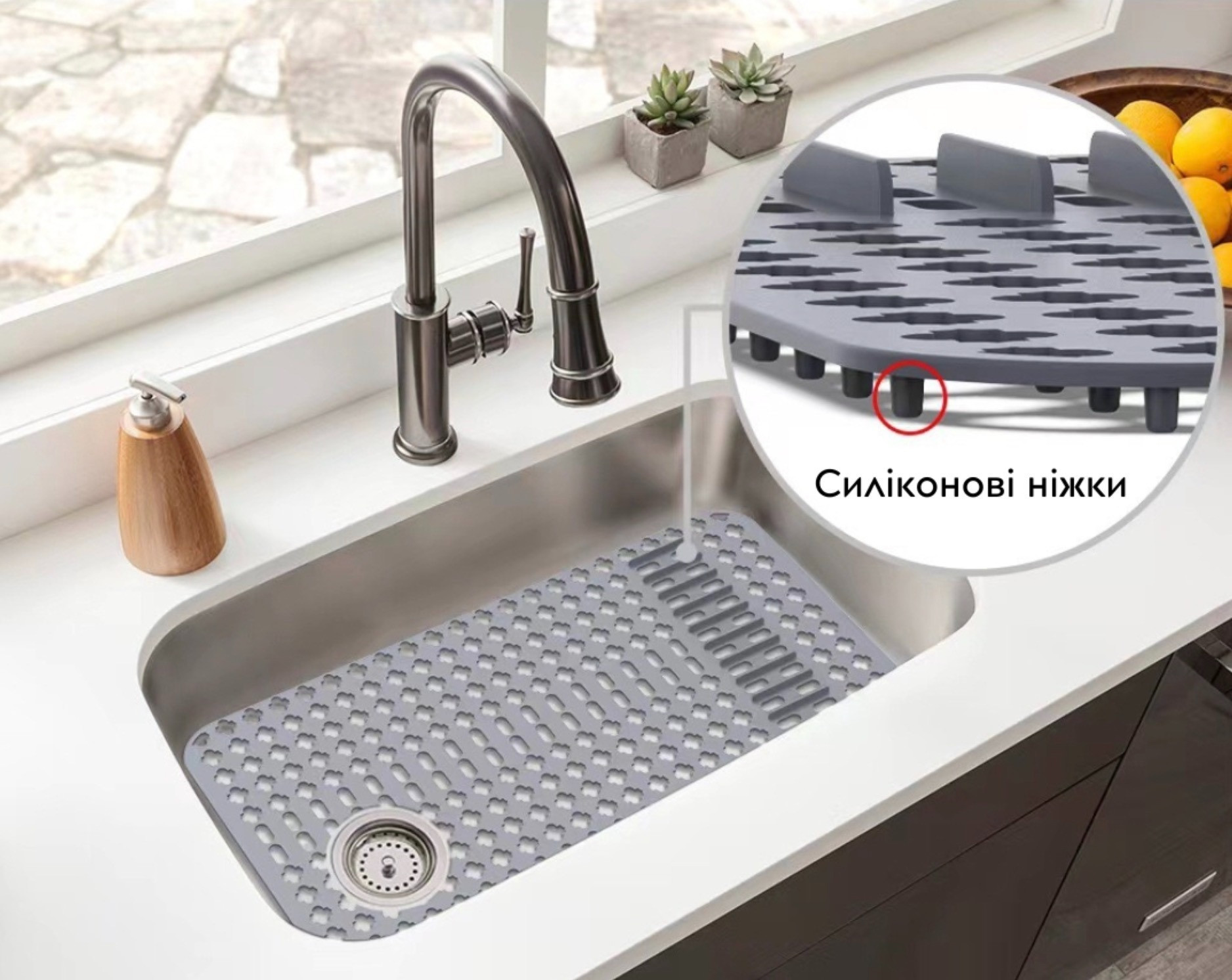 Силиконовый коврик обеспечит безопасное использование кухонной мойки при мытье любой посуды или бокалов.