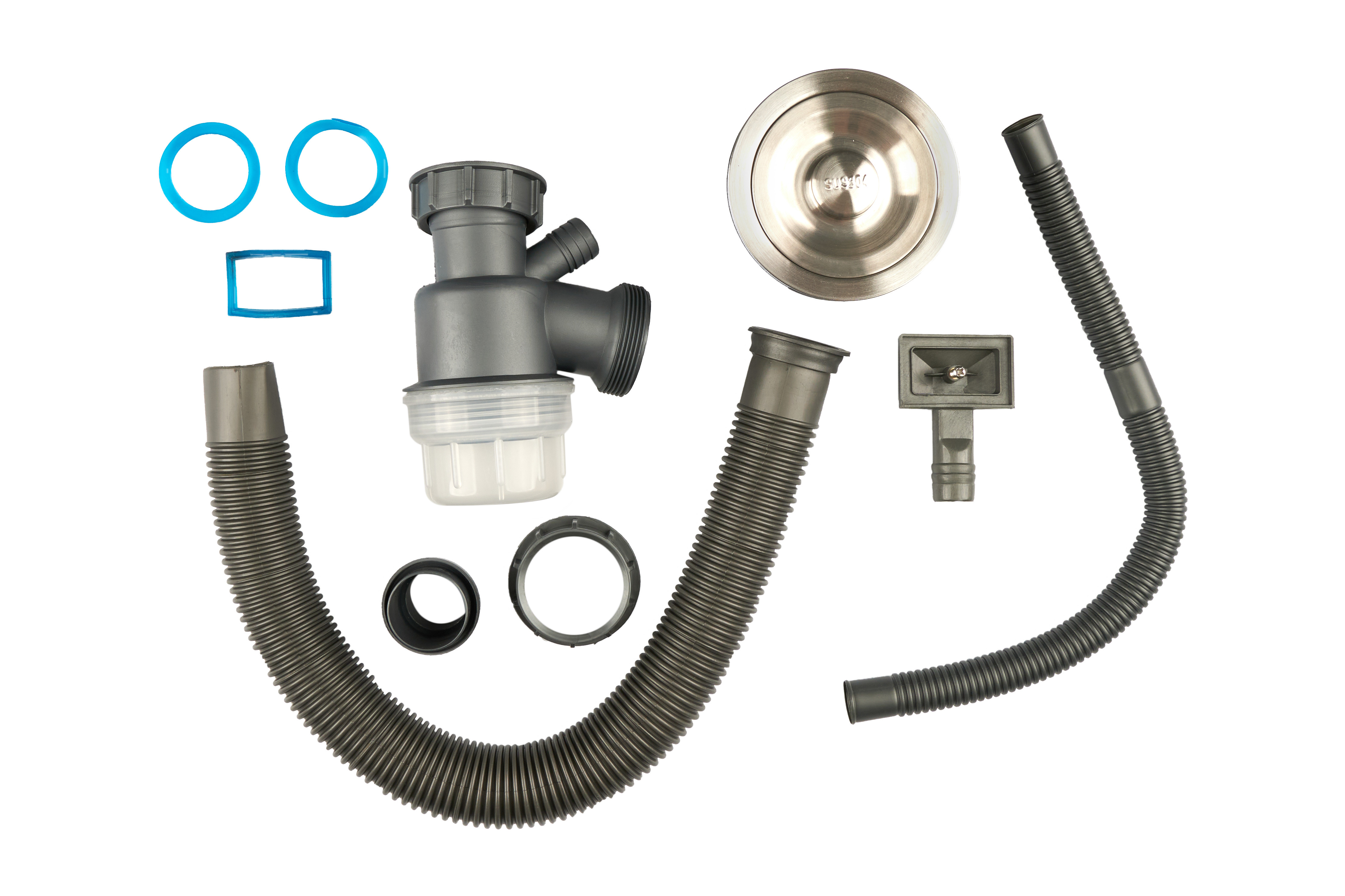 Все металлические комплектующие выполнены из нержавеющей стали 304 марки.Такай сифон для кухонной мойки более устойчив к царапинам и появлению коррозии.Сочетание в составе 18% хрома и 10% никеля позволяет верно служить десятилетиями!