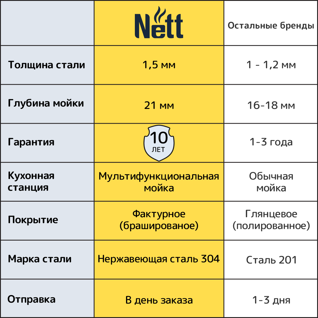 Рассмотрите вариант мойки с инновационным чёрным Nano покрытием. Оно обеспечивает дополнительную защиту от коррозии, скрывая даже случайные царапины и повреждения.